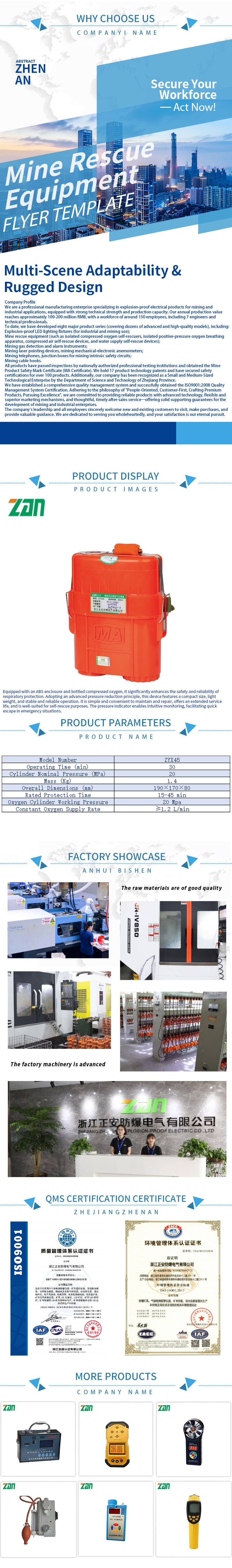 Nuestro equipo de rescate minero es una serie de productos de seguridad profesionales diseñados para operaciones mineras subterráneas, que integran confiabilidad, practicidad y alta adaptabilidad para brindar protección de seguridad integral para mineros y equipos de rescate. Estos productos, que cumplen con los estándares de seguridad internacionales y de la industria, se utilizan ampliamente en diversos escenarios mineros, respaldan de manera efectiva la prevención de seguridad diaria, la respuesta de emergencia y las operaciones de rescate, y son garantías de seguridad esenciales para las empresas mineras.