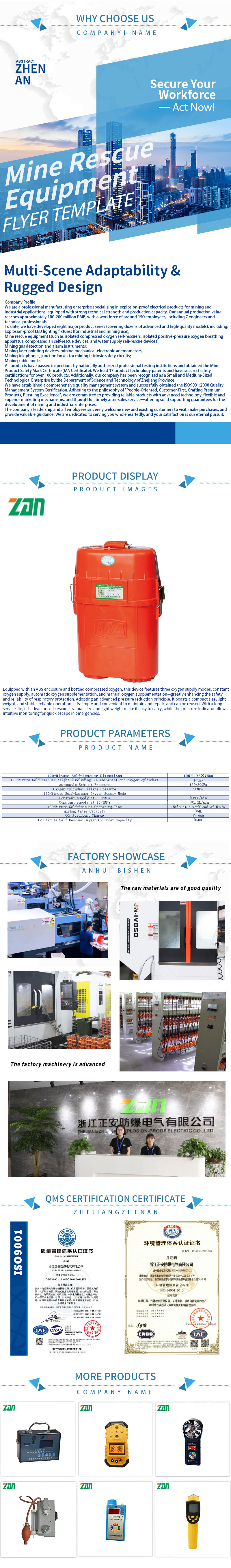 En términos de desempeño de seguridad, todos los productos han pasado estrictas certificaciones de calidad y seguridad, con múltiples diseños de protección de seguridad para evitar accidentes de seguridad causados ​​por fallas del equipo. Las herramientas de detección de gas pueden detectar con precisión y rapidez la concentración de gases nocivos en el subsuelo y emitir alarmas oportunas para recordar al personal que debe tomar medidas de protección. Los dispositivos de comunicación de emergencia garantizan una comunicación sin obstáculos entre el personal subterráneo y el centro de mando en tierra, facilitando el mando y la coordinación en tiempo real durante las operaciones de rescate.